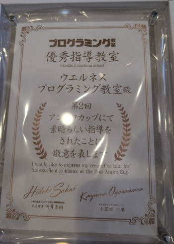 このたび、「第2回アンプロカップ」にて素晴らしい指導を行ったことが評価され、『優秀指導教室』賞をいただきました!